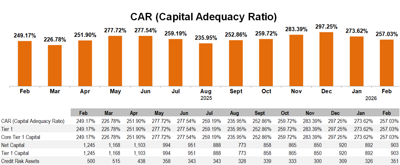 The minimum Capital Adequacy Ratio required for Bineo amounted to 10.50%, which includes a minimum requirement of Core Equity Tier 1 (CET1) of 7.00%.