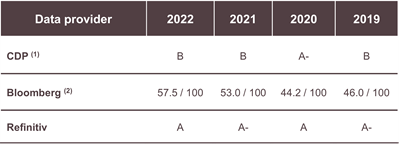 (2) Bloomberg only evaluates ESG disclosure performance. Due to changes in Bloomberg's assessment methodology, the figures for 2021 and before, differ from those previously published.