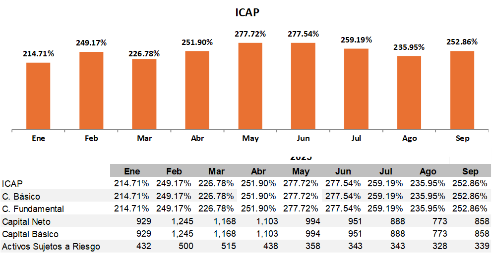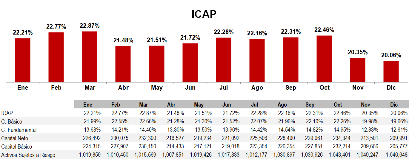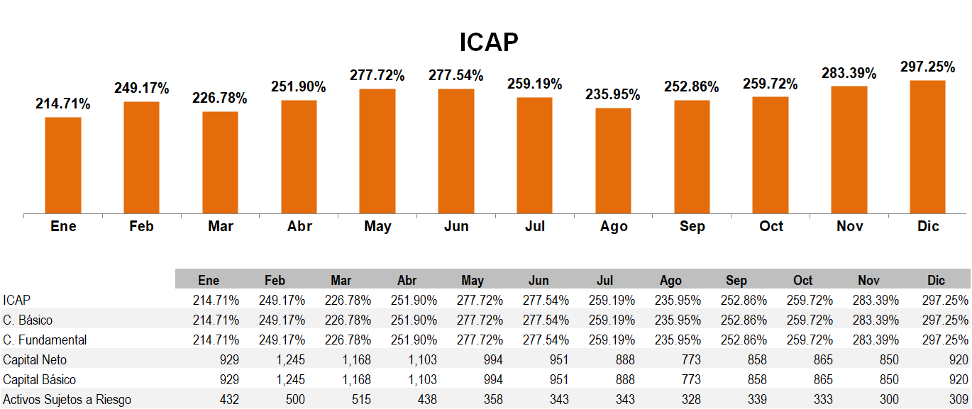 El Índice de Capitalización mínimo requerido para Bineo asciende a 10.50%, con un mínimo requerido para el CET1 es de 7.00%.