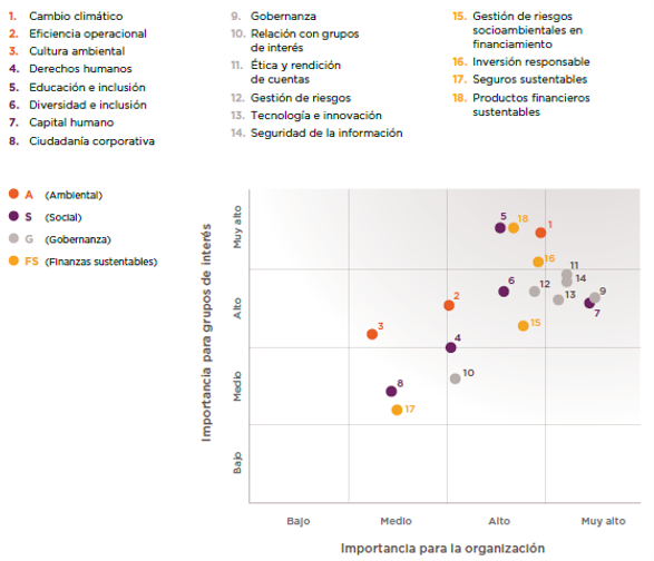 Para nosotros, la materialidad es un componente indispensable para la definición de la estrategia de sustentabilidad ya que permite la detección de los riesgos ambientales, sociales y económicos, lo cual a su vez desencadena alinear la estrategia de la organización a los factores de mayor impacto e interés; generar planes de acción e indicadores de desempeño y reportar y comunicar los avances en materia ASG con base en los temas relevantes que conforman la matriz.